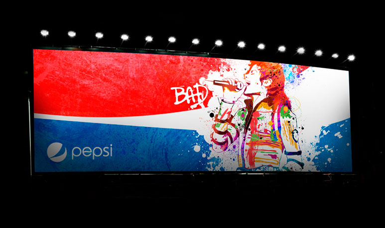 Проектной компания Loosli было поручено создать дисплеи для рекламной кампании Pepsi, объявленной под названием Live For Now. Loosli представит визуальные эффекты с изображением короля поп-музыки Майкла Джексона. Они будут использоваться для продвижения музыки церемонии MTV Awards и церемонии American Music Awards. Творческий Loosli Дизайн объяснил, что было приказано восстановить энергию и волнение чувствовал себя "на время". Эти драгоценные моменты мы можем наслаждаться жизнью без ограничений и не думая о прошлом или будущем. Loosli Design решили придать форму эту идею, используя яркие цвета и формы, в то время положить короля поп-музыки в самом центре действия. Дизайнеры Loosli объяснили, что было придумано возвратить энергию и волнение «на время». Мы сможем наслаждаться этими ценными моментами, они нам позволят оценить жизнь без ограничений, не думая о прошлом времени или о будущем. Loosli Design решил придать форму этой идее, используя яркие цвета и живые формы, помещая короля поп музыки Майкла Джексона в самом центре действия.