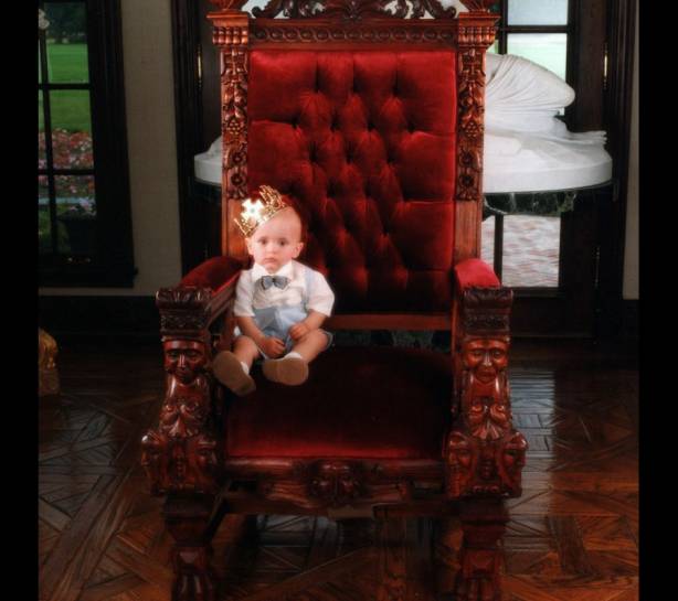 Маленький Принс с короной на папином троне