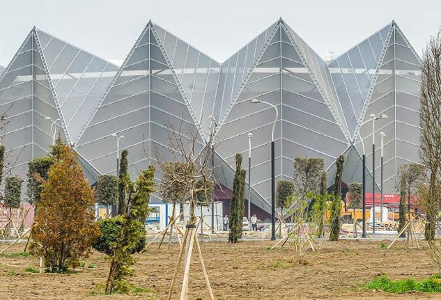 Данный проект был разработан немецкой архитектурной компанией GMP Architects. Огромная арена, расположенная под навесом, словно окружена венцом из металлических граненых шестиугольников. Поэтому издалека сооружение имеет вид распустившегося цветка лотоса, символизирующего чистоту. Таким образом, значение священного по преданию некоторых народов растения, будет благоприятно влиять на атмосферу конкурса, а также олицетворять прозрачность голосования, определяющего его победителя.
