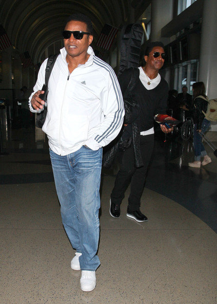 | Братья Майкла Джексона Тито Джексон, Джеки Джексон и Джермейн Джексон, прибывающие на рейс в аэропорту LAX в Лос-Анджелесе, Калифорния, 19 июня 2012 года.