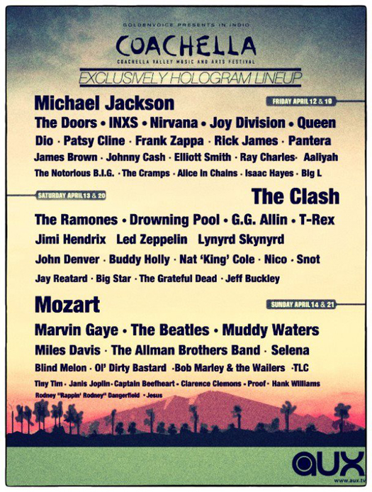 Еще несколько лет назад мысль о том, что умершие артисты могут вновь выйти на сцену — теперь уже в образе голограммы — могла бы показаться безумной. Тем не менее именно это случилось несколько дней назад на фестивале Coachella в Калифорнии, где зрителям представили голограмму рэпера Тупака Шакура. Вернуть таким образом покойного исполнителя на сцену было идеей Доктора Дре, и, надо сказать, получилось очень эффектно. Хоть и жутковато, если учесть, что Тупака давно нет в живых.