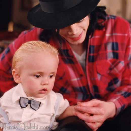 Майкл Джексон держит за ручку маленького принса