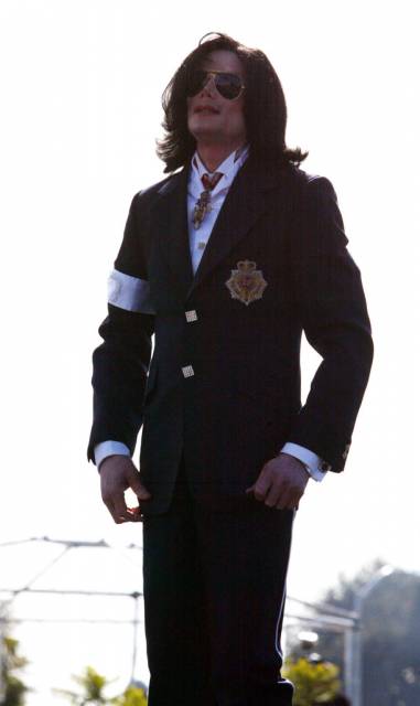 Майкл на крыше машины смотрит на поклонников